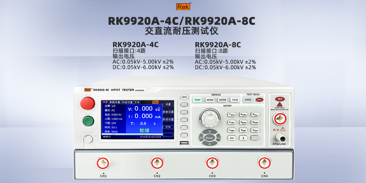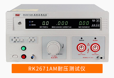 家用電器的耐要求并不高,5kV就能滿足絕大多數家用電器的耐壓測試需求,RK2670AM、RK2671AM/BM/CMRK2671DM是大電流型(交直流10KV,電流100ma),RK2672AM/BM/CM/DM/E/EM、RK2674A/B/C/-50/-100等型號的耐壓測試儀。其中RK267是手動調節,RK71、RK99系列可實現自動化,通訊功能
