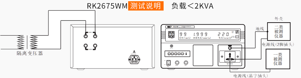 RK2675AM (500VA) . RK2675WM(無源). RK2675B(1000VA).RK2675C(2000VA).RK2675D(3000VA).RK2675E(5000VA)這幾款是目前較為常用的泄漏電流測試儀。