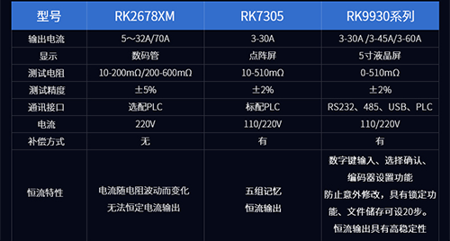 可選儀器:RK2678XM系列(電流30/32/70安培可選),程控機RK7305系列,RK9930系列(電流30/40/60安培可選),程控系列具備PLC信號輸出,RS232,RS485通訊功能。