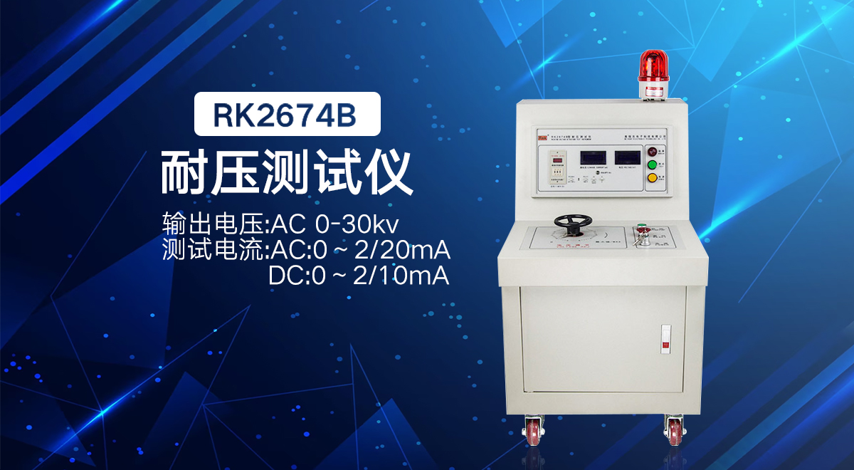 今天為大家帶來的RK2674B是耐壓測試儀的耐壓測試,RK2674系列耐壓測試儀是測量耐壓強度的儀器,可以直觀、準確、快速地測試各種被測對象的擊穿電壓、漏電流等電氣安全性能指標,并可以作為高壓源用來測試元器件和整機性能。