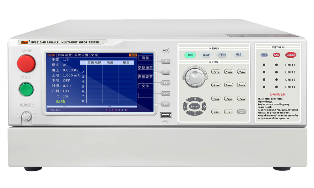 RK71系列程控,RK9910系列型號程控耐壓測試儀,多通道系列可提升測試效率,可以一次性測多個產品程控系列的耐壓測試儀具有程控自動升壓,降壓,電弧偵測的功能,測試結果還可以導出報表的形式保存,便于測試。產品推薦: