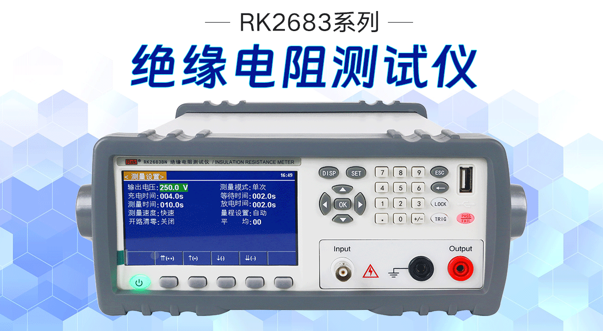 RK2683系列:該系列絕緣電阻測試儀測試電壓(1V-1000V)符臺GB4706.1.其這得電阻測式范圍最大可達到(10K-10T).RK2683系列可滿足大部分家用電器的絕絡電緣測試要求